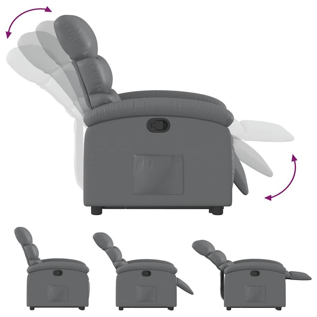 - Manuel lænefunktion: Denne lænestol har et håndtag i højre side. Med et enkelt træk i håndtaget kan du manuelt justere fodstøtten og ryglænet til en hvilken som helst position, som du finder behagelig. Denne funktion giver mulighed for en maksimal hældning på 135 grader. Derudover kan ryglænet hurtigt føres tilbage til den oprindelige position med et let træk i håndtaget.