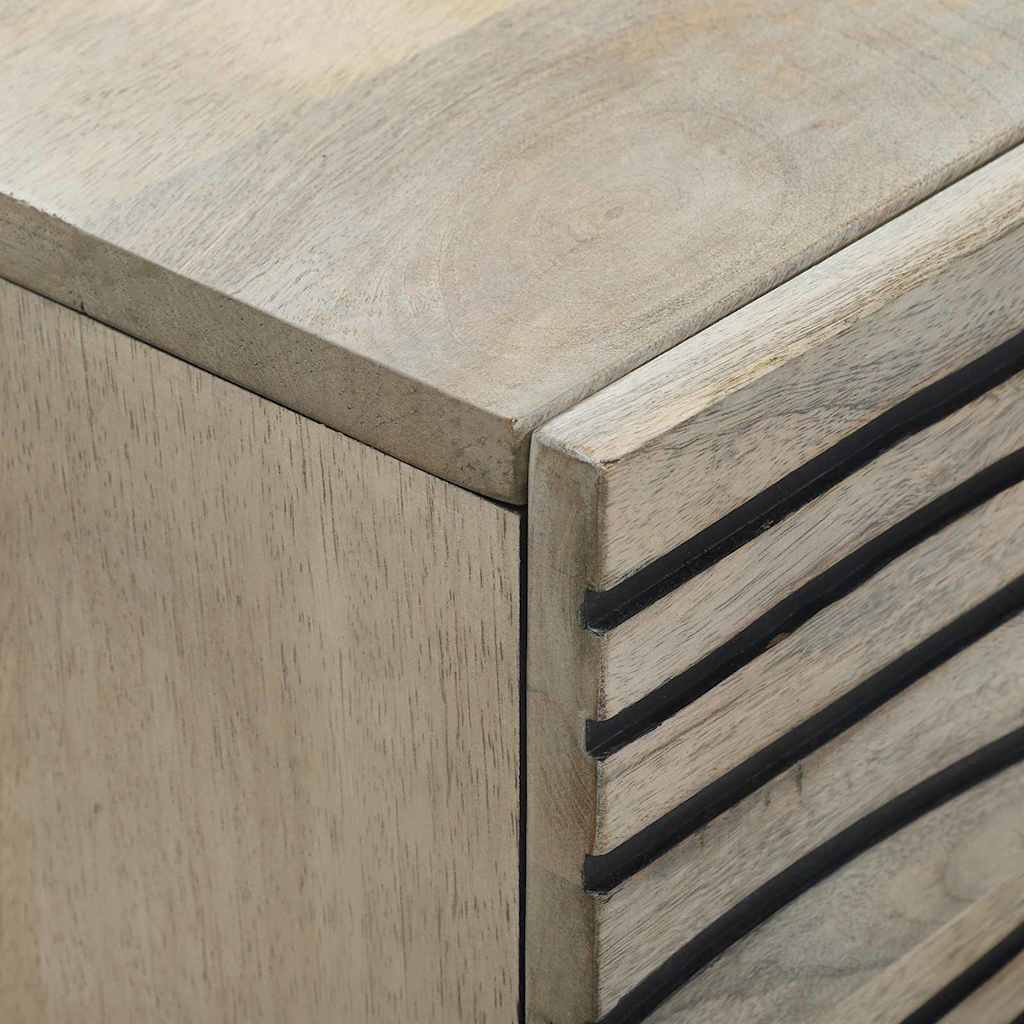 Dette rustikke sideboard skiller sig virkelig ud og er perfekt til at tilføje ekstra opbevaring i enhver stue. Det har et lækkert, bølget mønster i massivt mangotræ, hvilket gør det til en super match til varm og rustik indretning. De slanke sorte jernben giver det et moderne twist, så det passer ind i alle slags rum. Du kan også bruge det i spisestuen, hvor stil og praktisk nytte går hånd i hånd.