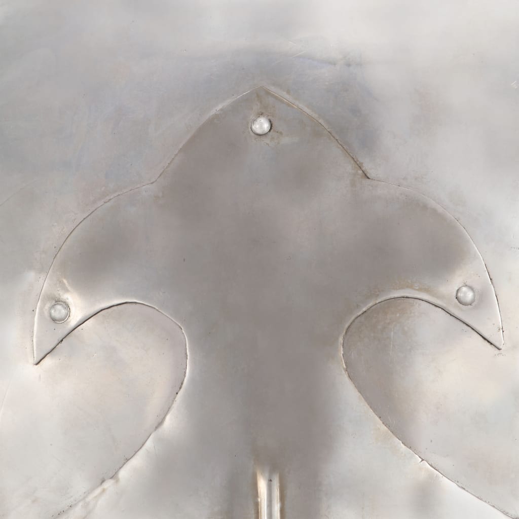 Denne harnisk kombinerer antik stil og robuste materialer i en iøjnefaldende rustning. Derudover er den lavet af 18-gauge stål med en poleret finish.