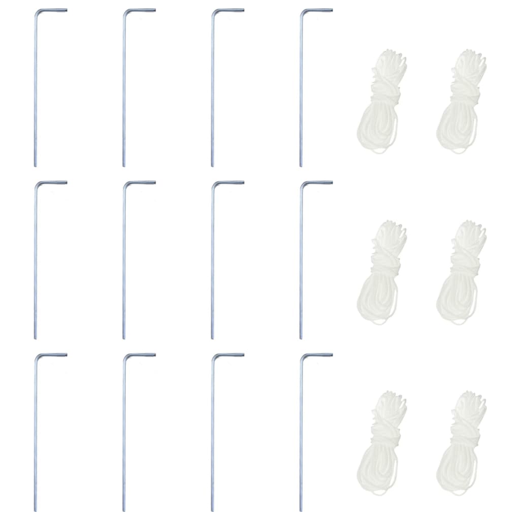 Montering er virkelig let. Teltet kan nemt foldes sammen til opbevaring og transport. Installationstilbehør som f.eks. fastgørelsesreb og jordspyd er inkluderet.