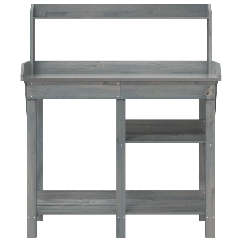 - Alsidig opbevaringsplads: Pottebordet med åbne hylder, en topskinne og en skuffe giver god plads til tilbehør såsom små haveredskaber, jord, gødning mv.