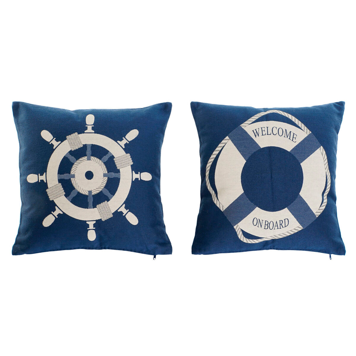 Pude Home ESPRIT Blå Hvid 45 x 10 x 45 cm (2 enheder)