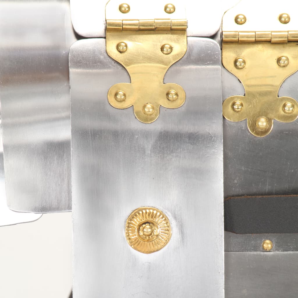 Denne rustning er en nøjagtig kopi af en original romersk legionær soldatkropsrustning, kendt som Lorica segmentata, der giver beskyttelse både for og bag. Den er fuld bærbar og udstyret med justerbare læderbånd for en behagelig pasform.