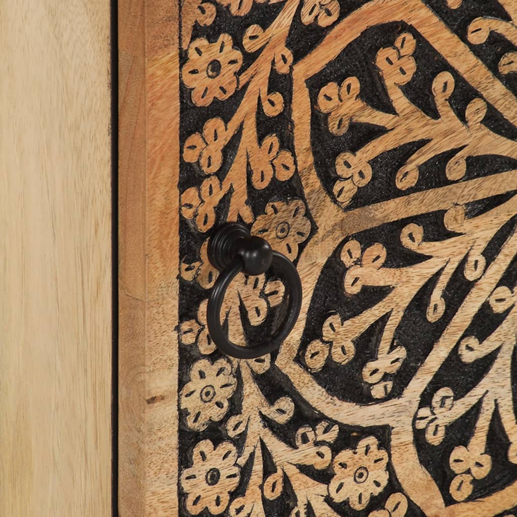 - Massivt mangotræ: Massivt mangotræ er et stærkt, tropisk hårdttræ, der skaber robuste møbler. De smukke åremønstre gør hvert møbel unikt. Skabet er fremstillet af massivt mangotræ, så det er holdbart og stabilt.