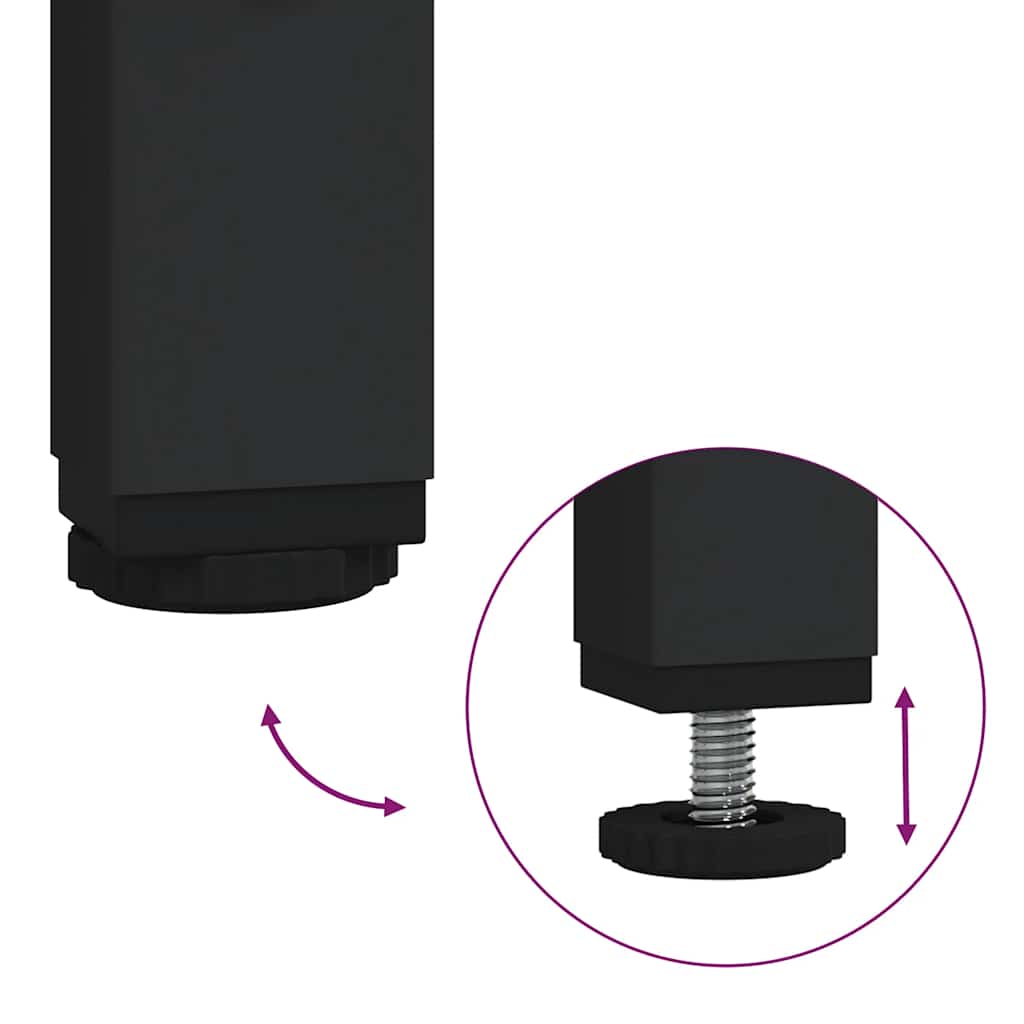 - Justerbare fødder: Fire justerbare fødder med plastikdutter holder sideskabet afbalanceret på ujævne underlag, og de øger stabiliteten.
