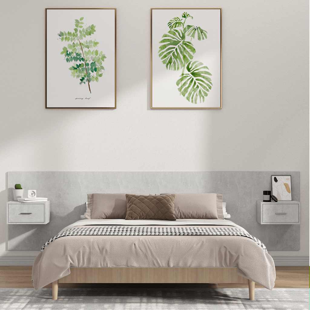 sengegavl med opbevaring konstrueret træ betongrå