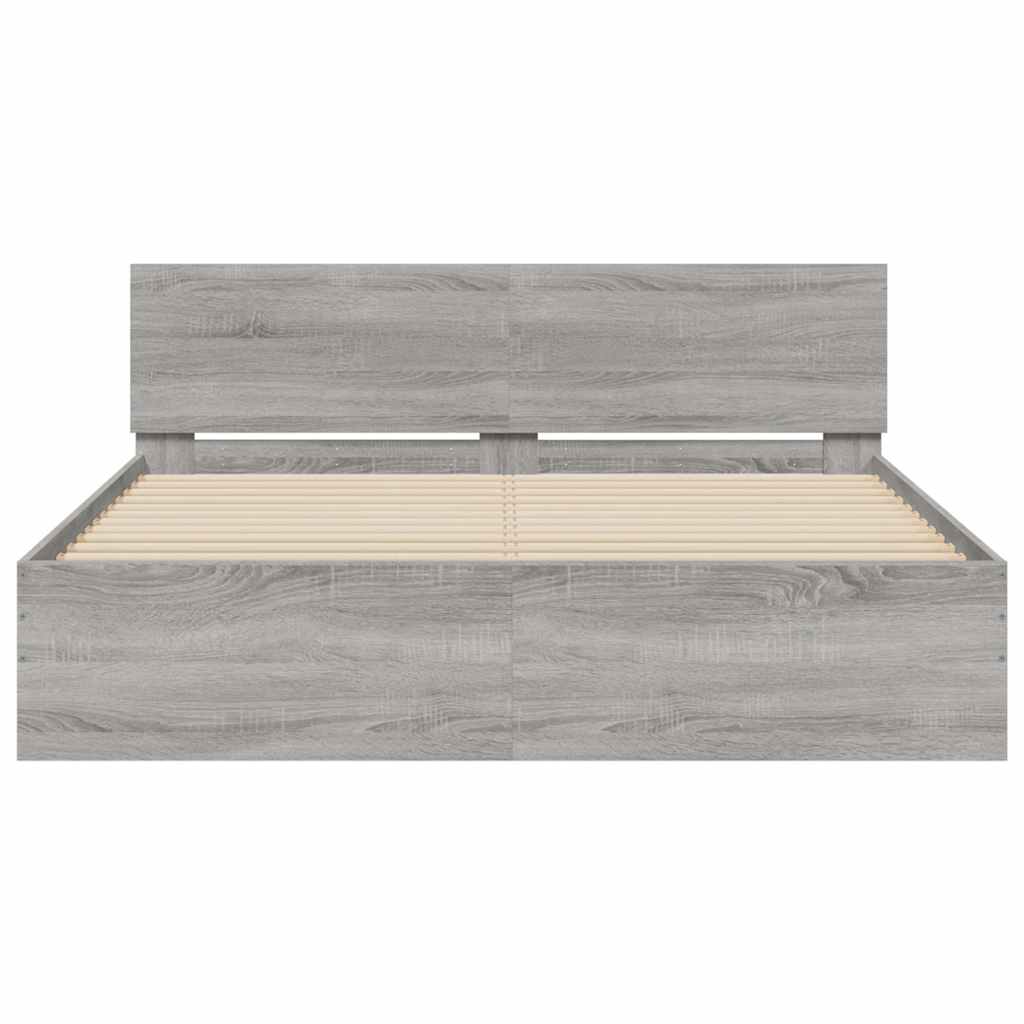 sengeramme med sengegavl og LED-lys 160x200 cm grå sonoma-eg