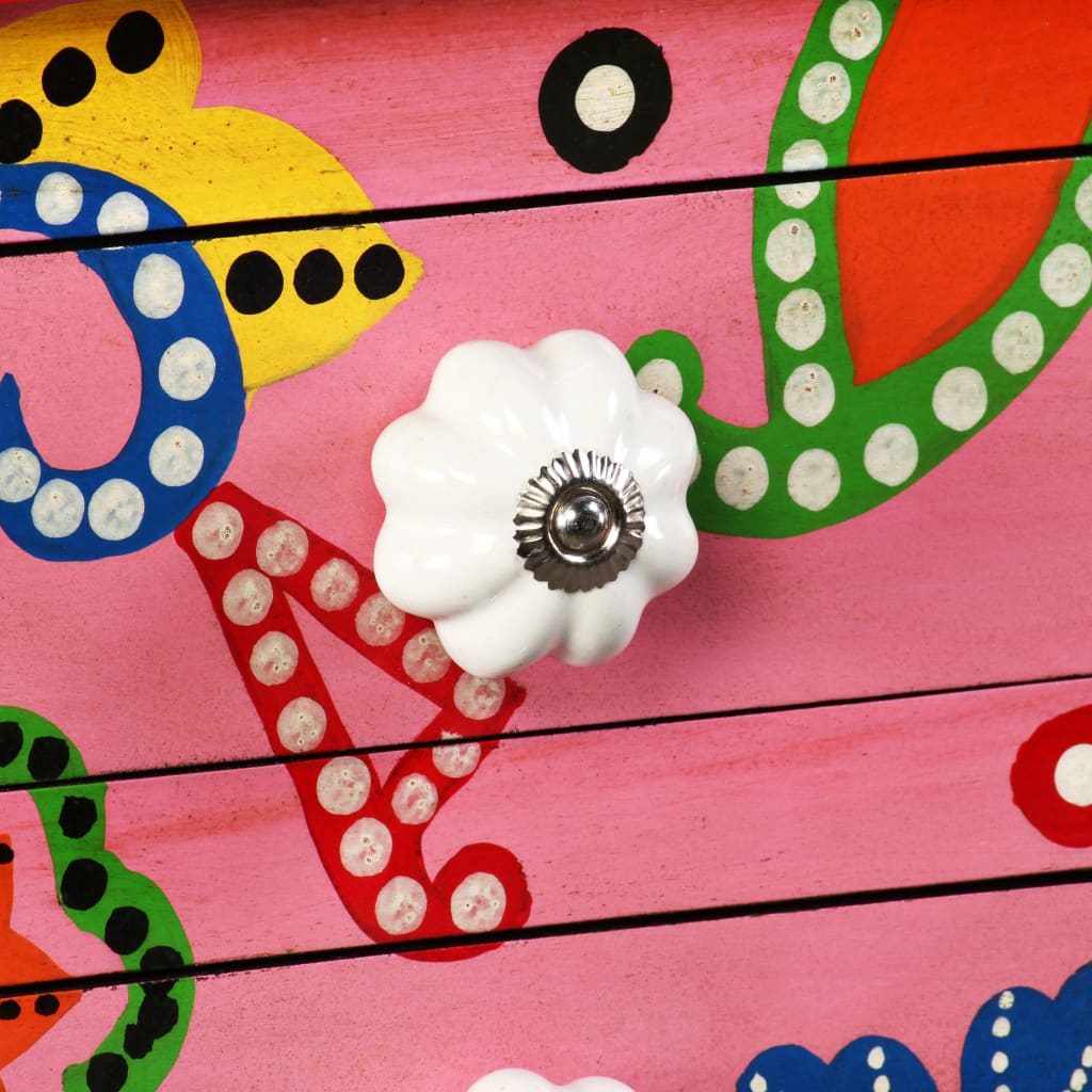Bordet er håndlavet af mangotræ, som er både holdbart og smukt, og håndværket øger den i forvejen spektakulære retrostil. Bordet har rige, håndmalede, dekorative detaljer, som udstråler et strejf af elegance og fremhæver det raffinerede udseende. De moderne håndtag gør det lettere at åbne skufferne, og de gør bordet mere stilfuldt.