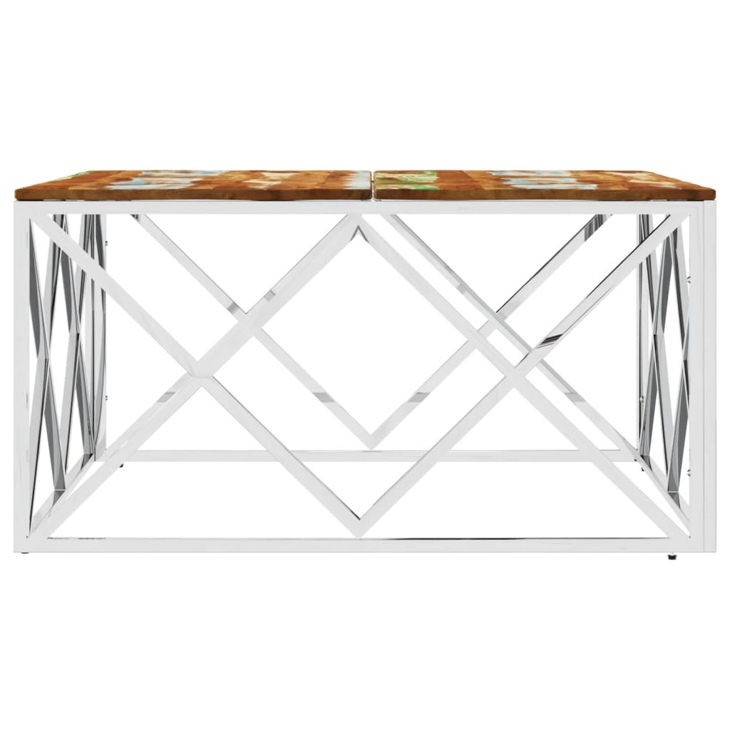 sofabord rustfrit stål og massivt genbrugstræ sølvfarvet