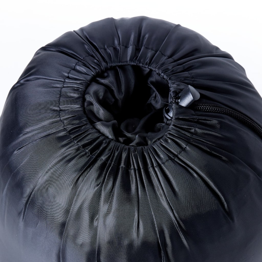 - Dobbeltsidet lynlås: Soveposen er forsynet med en dobbeltsidet lynlås, hvilket forbedrer den indvendige luftstrøm og muliggør nem temperaturregulering indeni soveposen. Den har sikkerhedsstropper, som hjælper med at forhindre lynlåsen i at åbne sig.