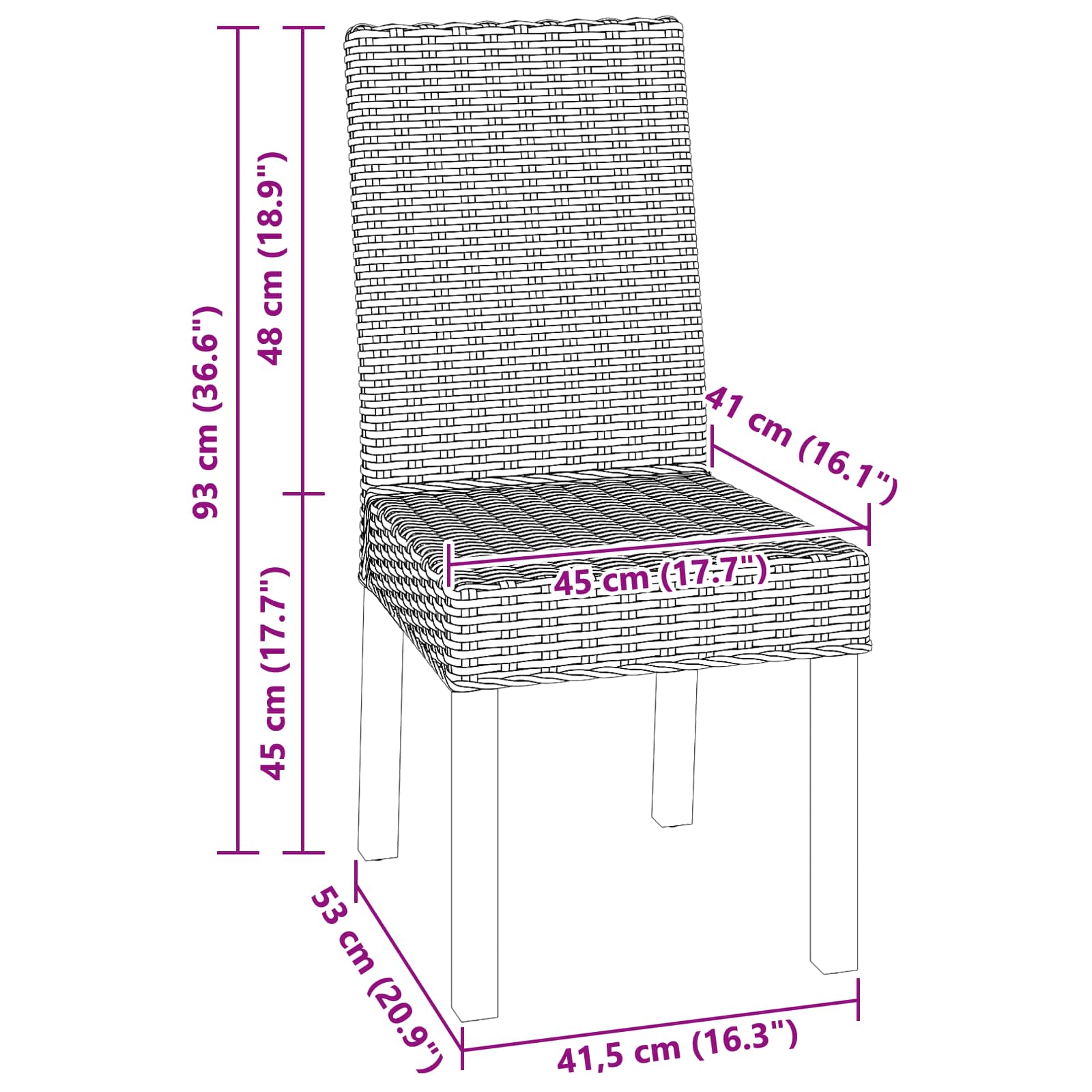 - Samlede dimensioner: 45 x 54 x 93 cm (L x B x H)