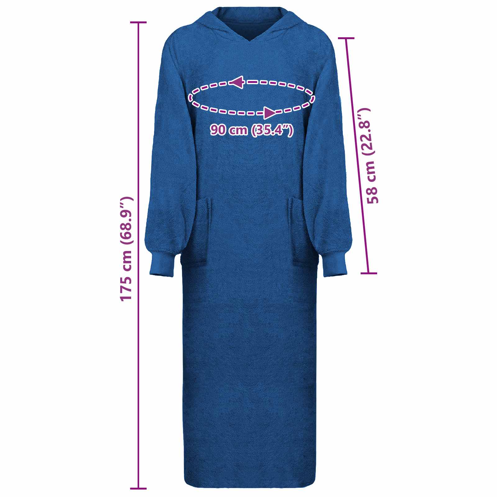 - Inkluderede komponenter: Tæppe-hættetrøjen kommer med rummelige forlommer, som holder dine hænder varme eller opbevarer småting. Funktionaliteten sikrer, at du får både varme og praktisk anvendelse - perfekt til både afslapning og mindre ærinder hjemme.