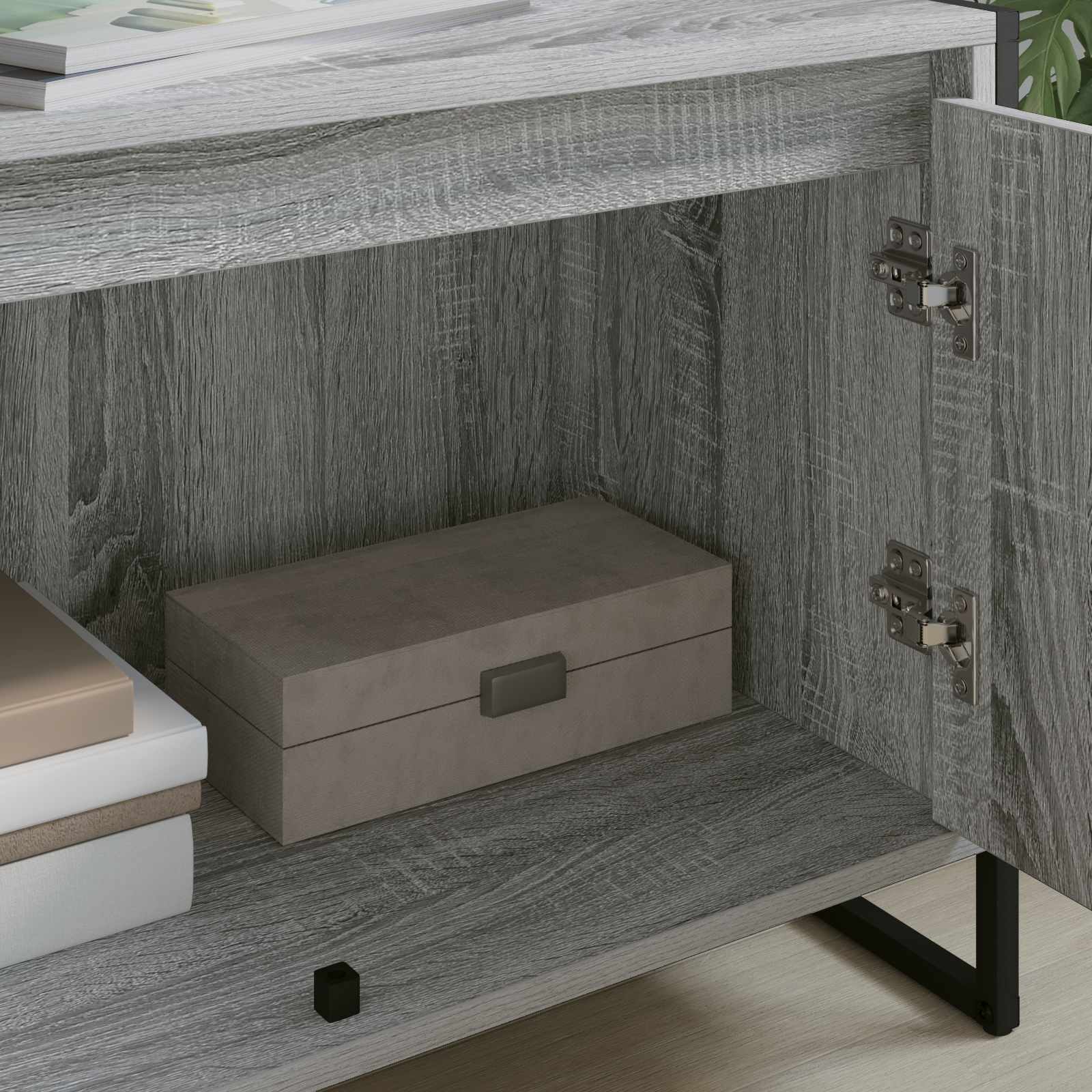 Dette TV-skab repræsenterer moderne industriel stil, der nemt passer ind i enhver stue. Det konstruerede træ og rektangulære design gør det attraktivt og funktionelt med masser af plads til medieudstyr. Kombinationen af materialer sikrer, at det både ser godt ud og er holdbart, perfekt for dem, der vil have en stilfuld men solid opbevaringsløsning.