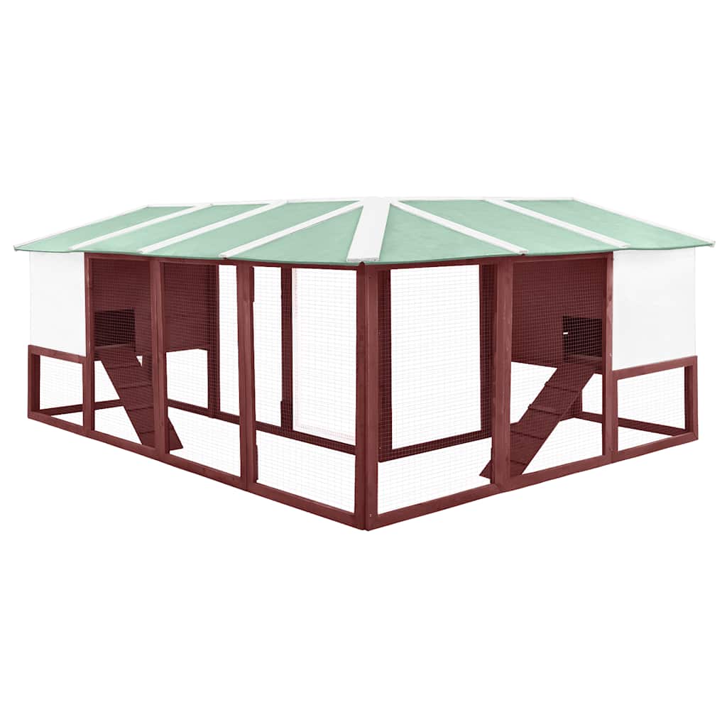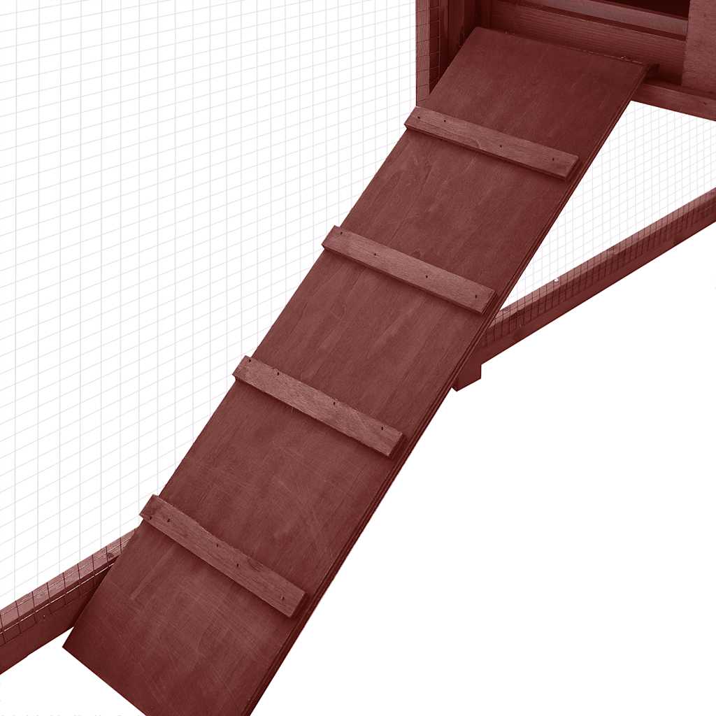 Kaninburet har et omfattende design med to huse og en meget stor løbegård med galvaniseret ståltråd, som gør det nemt at holde øje med dine kæledyr og som forhindrer ulykker. Det sikrer også din overvågning af kaninerne og giver dem mulighed for at få nok frisk luft. Kæledyrsburets stel er konstrueret af massivt fyrretræ, hvilket gør det stabilt og holdbart. Vippetaget er beklædt med vandafvisende stof og holder regnen ude. Husene har det perfekte soveområde. Derudover fører en skridsikker rampe fra jorden op til overetagen.