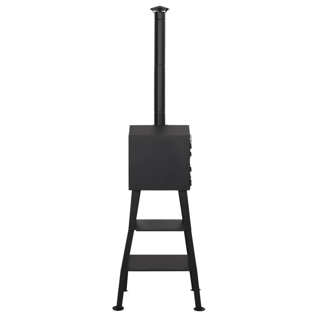 Denne ovn er velegnet til alle typer kul. Ildbakken er udtagelig, hvilket muliggør hurtig og nem rengøring. Rummet i toppen bruges til at bage, og bunden er lavet af to ildfaste mursten, som fordeler varmen jævnt i ovnen, og den kan modstå temperaturer på op til 1300 ℃. Stenene sikrer også, at din mad ikke bliver forurenet af flyvende aske eller sten fra ilden. De to hylder i bunden af ovnen er praktiske til opbevaring af grillhandsker eller andet udstyr. Denne ovn kommer også med et indbygget termometer.