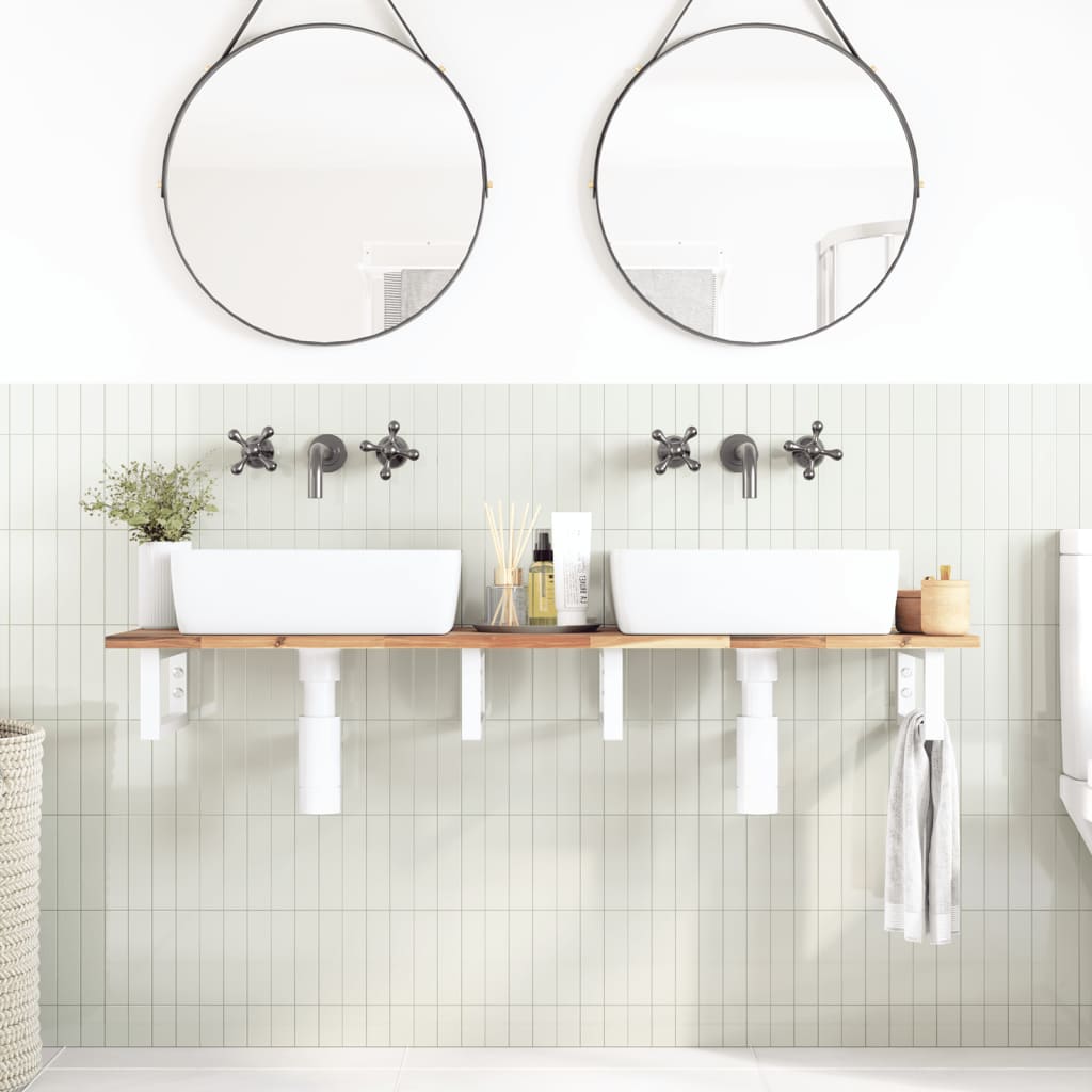 Den væghængte hylde kan monteres sikkert på væggen. Det er en elegant og pladsbesparende løsning til dit badeværelse.