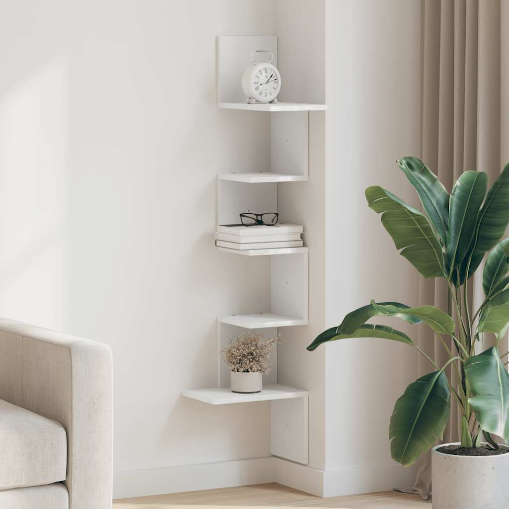 væghængt hjørnehylde 32x32x127,5 konstrueret træ hvid