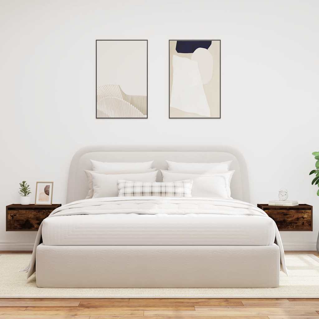 væghængte sengeborde 2 stk. med LED-lys røget egetræsfarve