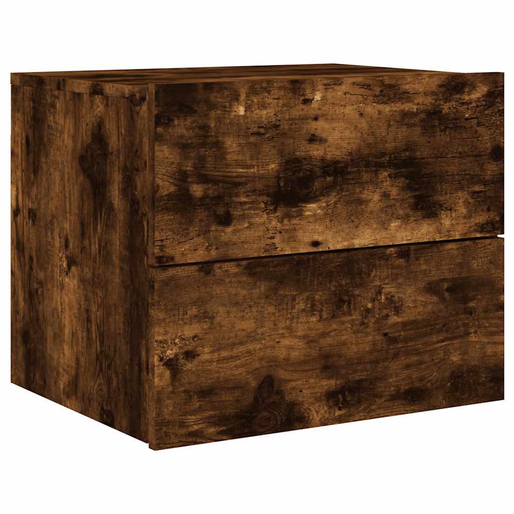 væghængte sengeborde 2 stk. med LED-lys røget egetræsfarve