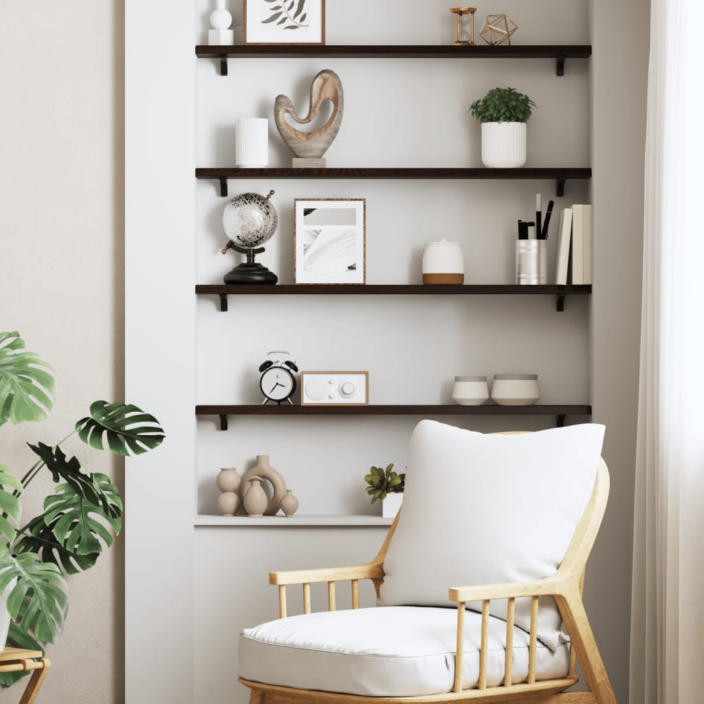 væghylde 100x10x2 cm behandlet massivt egetræ mørkebrun