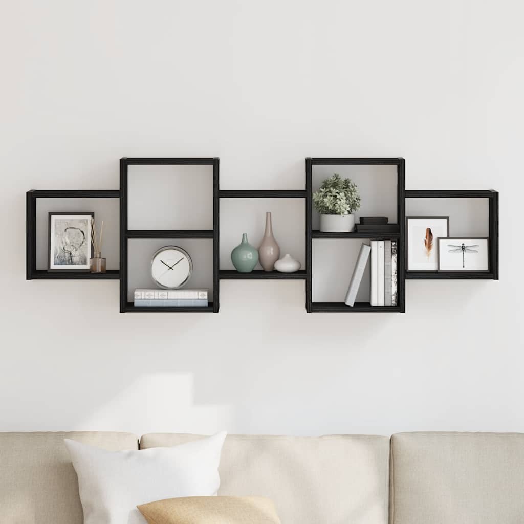 væghylde 129x18x42 cm konstrueret træ sort egetræsfarve