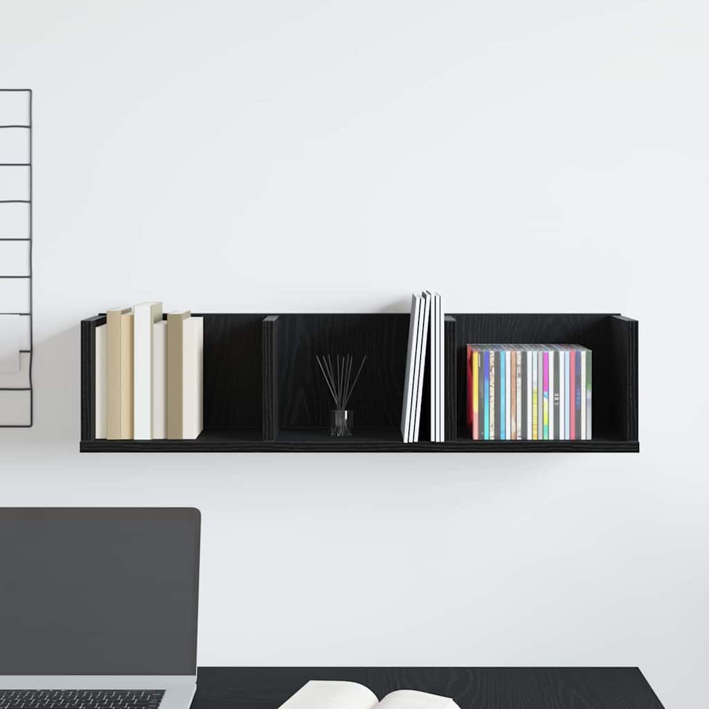 Væghylde med hylde Sort eg 75 x 18 x 18 cm Konstrueret træ