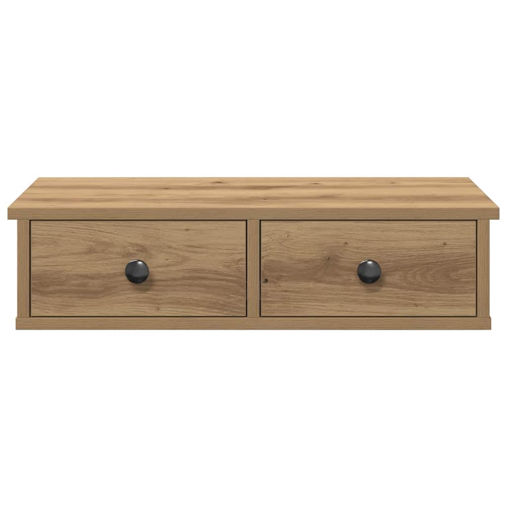 væghylde med skuffer 60x28x15 cm konstrueret træ egetræsfarve