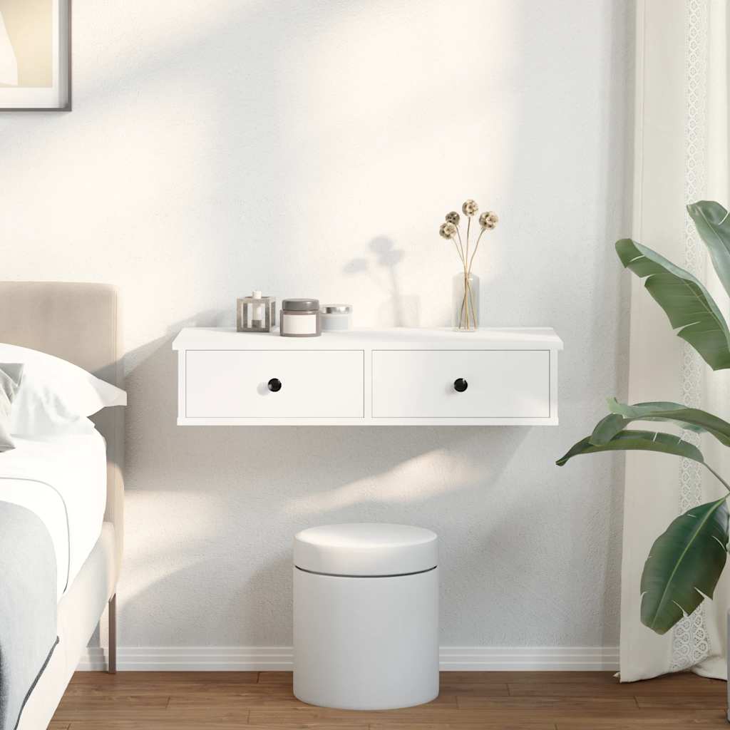 væghylde med skuffer 80x34x17 cm konstrueret træ hvid