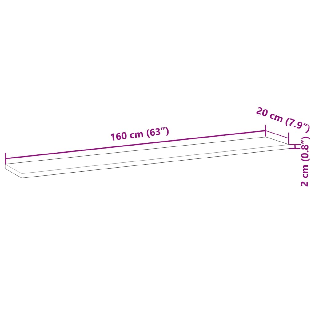 væghylder 2 stk. 160x20x2 cm ubehandlet massivt akacietræ