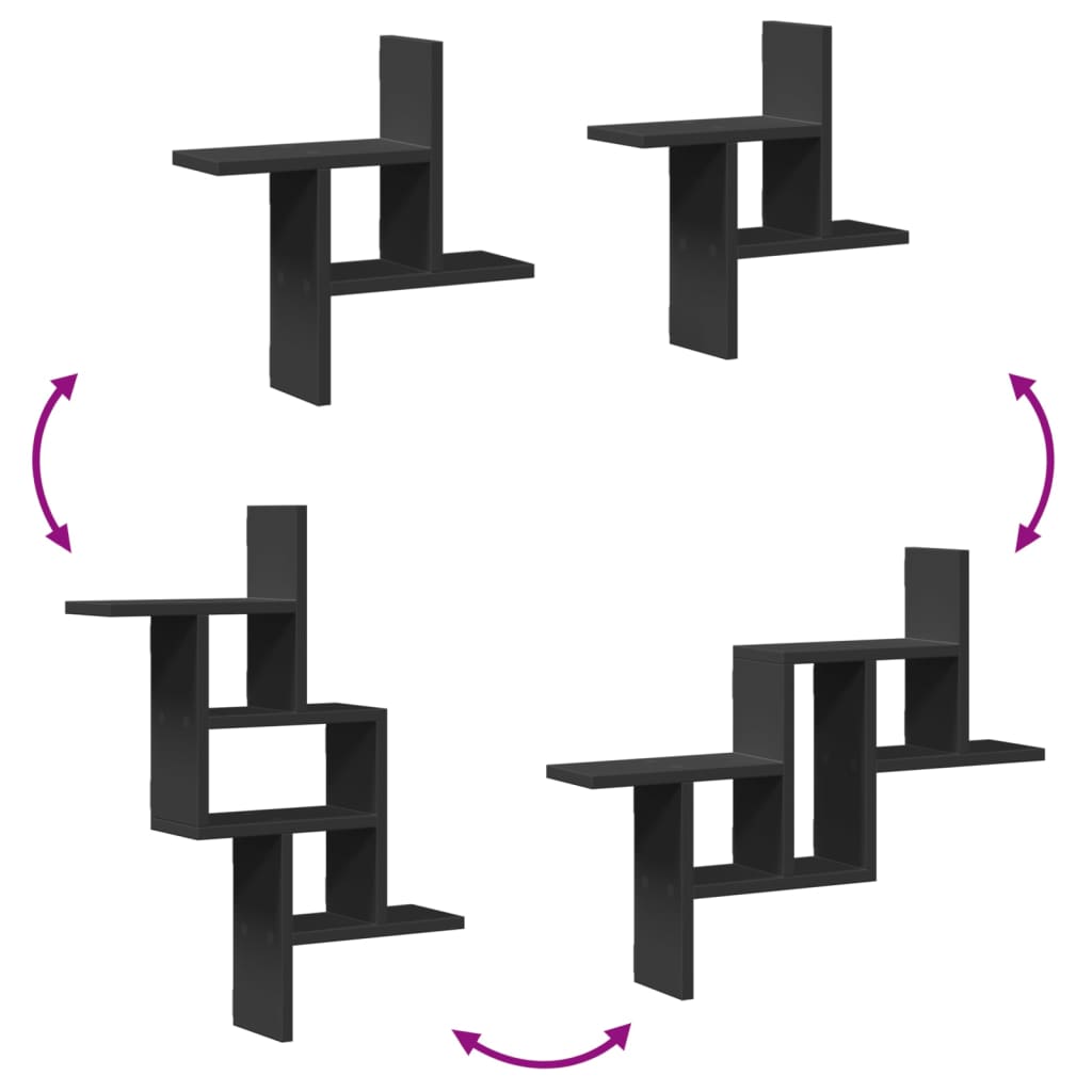 væghylder 2 stk. 38x12x38 cm konstrueret træ sort