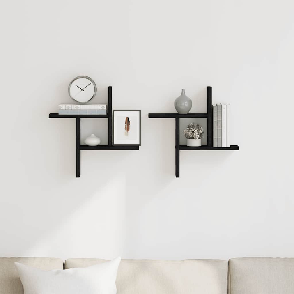 væghylder 2 stk. 38x12x38 cm konstrueret træ sort egetræsfarve