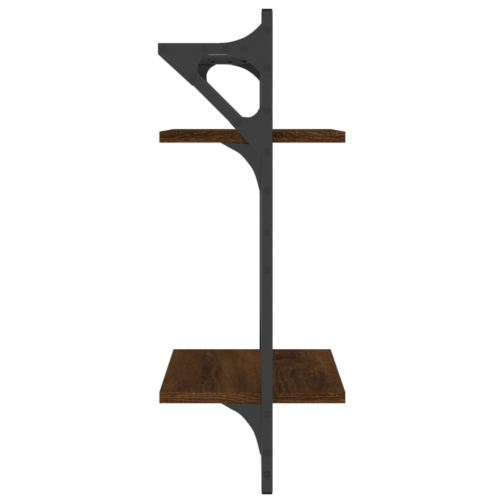 væghylder 2 stk. med stænger og 2 hylder 30x25x65 cm brunt eg