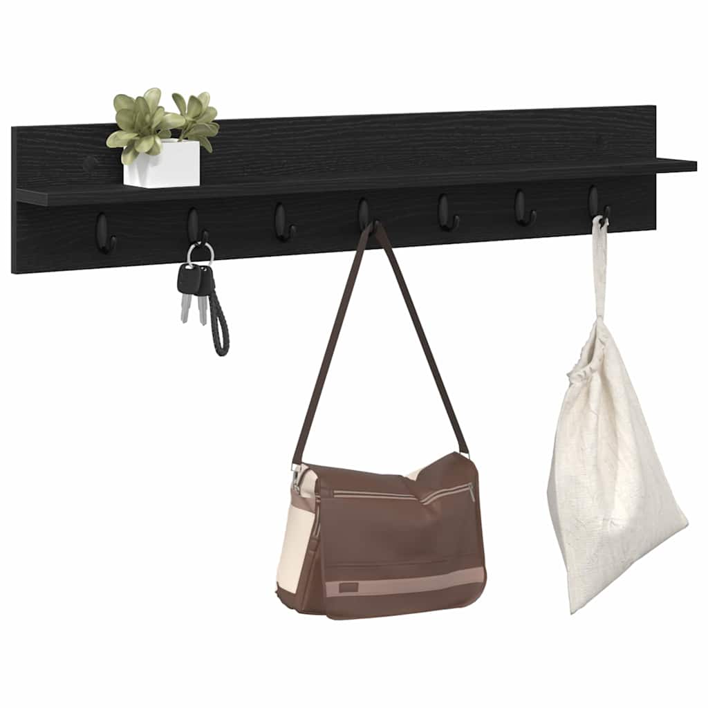 Vægmonteret Jakkeholder med hylde Sort eg 100 x 10.5 x 18 cm