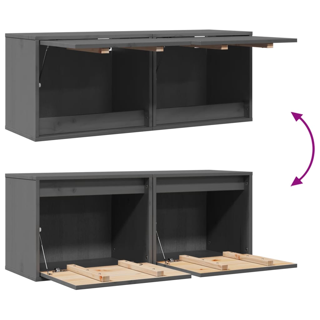vægskabe 2 stk. 45x30x35 cm massivt fyrretræ grå