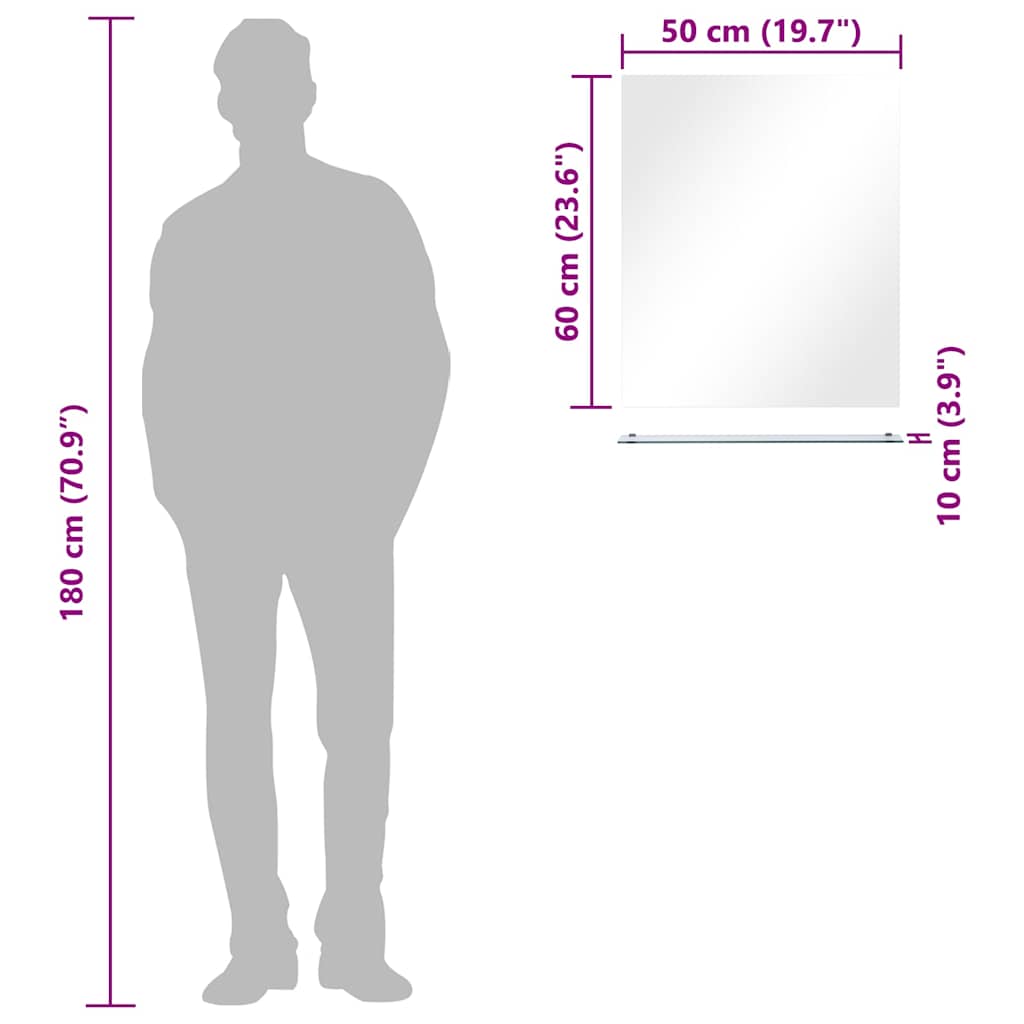 vægspejl med hylde 50 x 60 cm hærdet glas