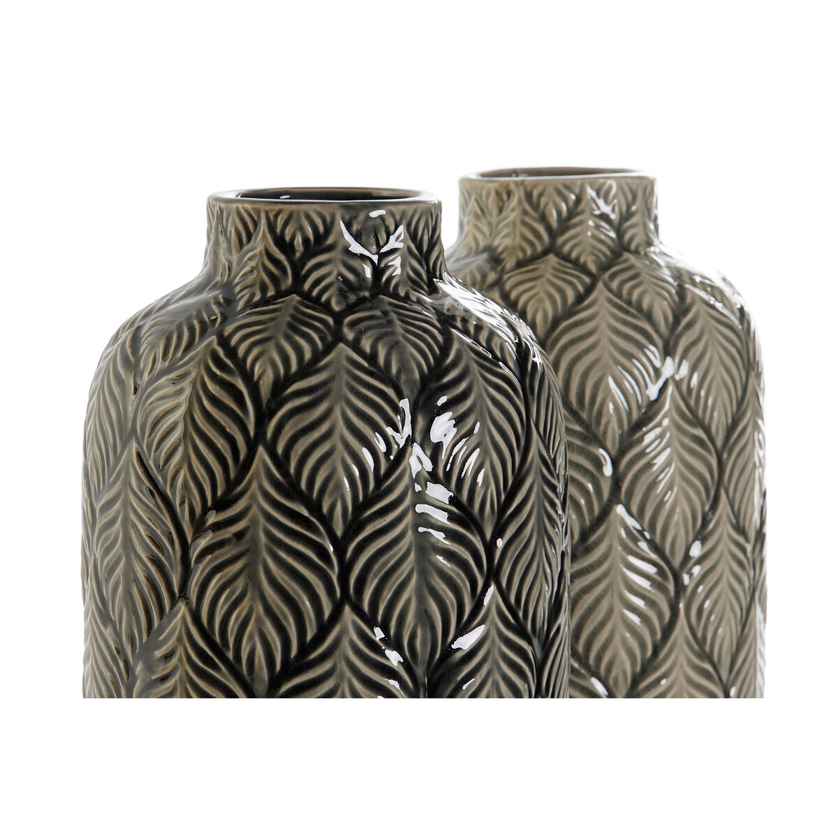 Vase DKD Home Decor Grøn Grå Porcelæn Orientalsk 16 x 16 x 40 cm (2 enheder)