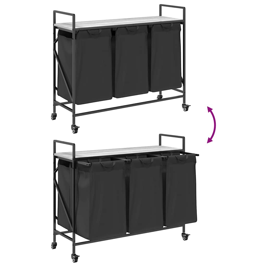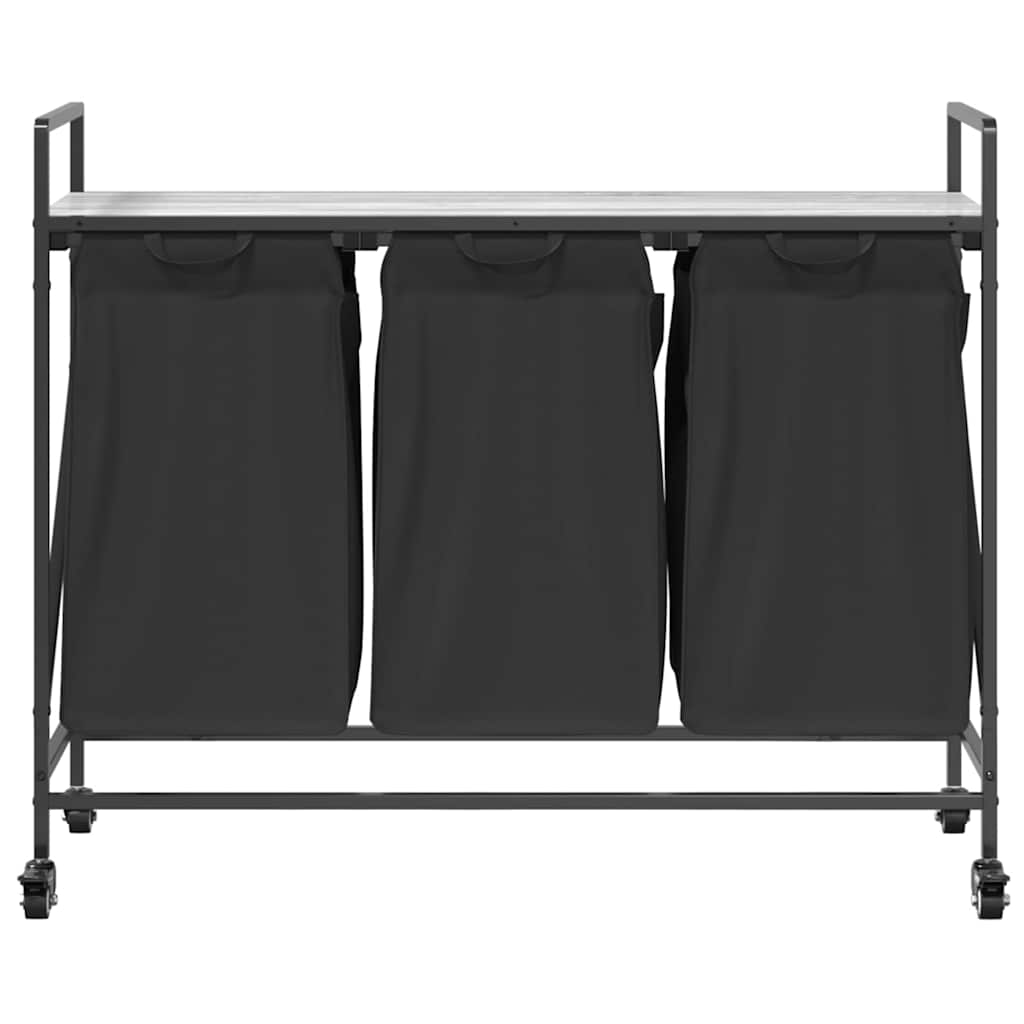 vasketøjskurv 3 rum med hjul grå sonoma-eg