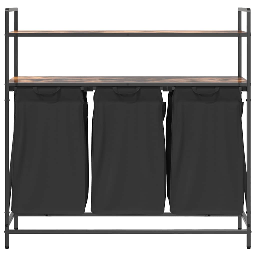 vasketøjskurv 3 rum med hylder røget egetræsfarve