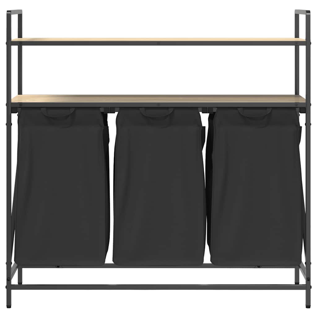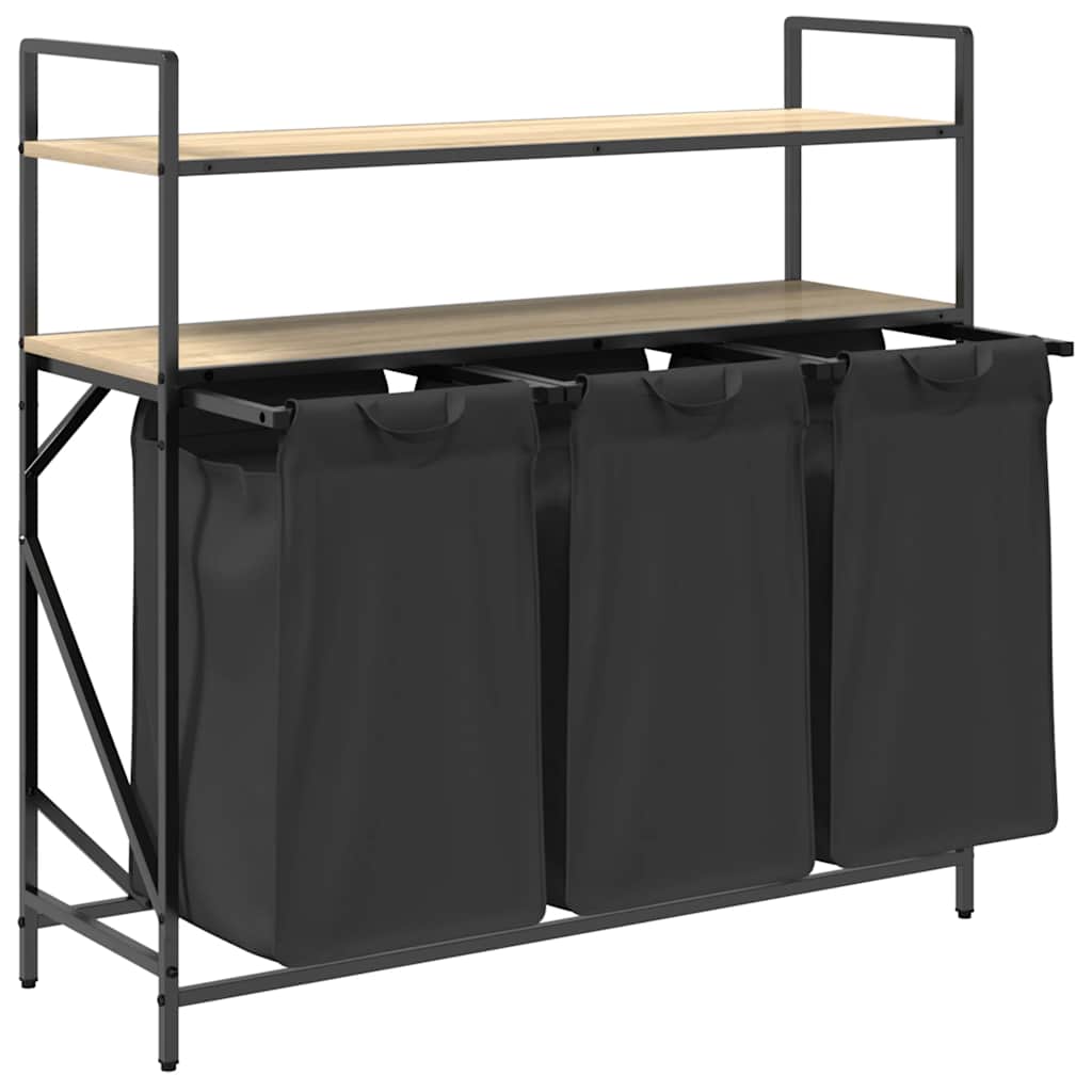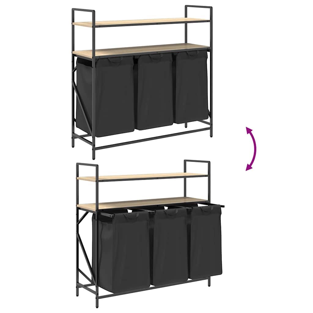 vasketøjskurv 3 rum med hylder sonoma-eg