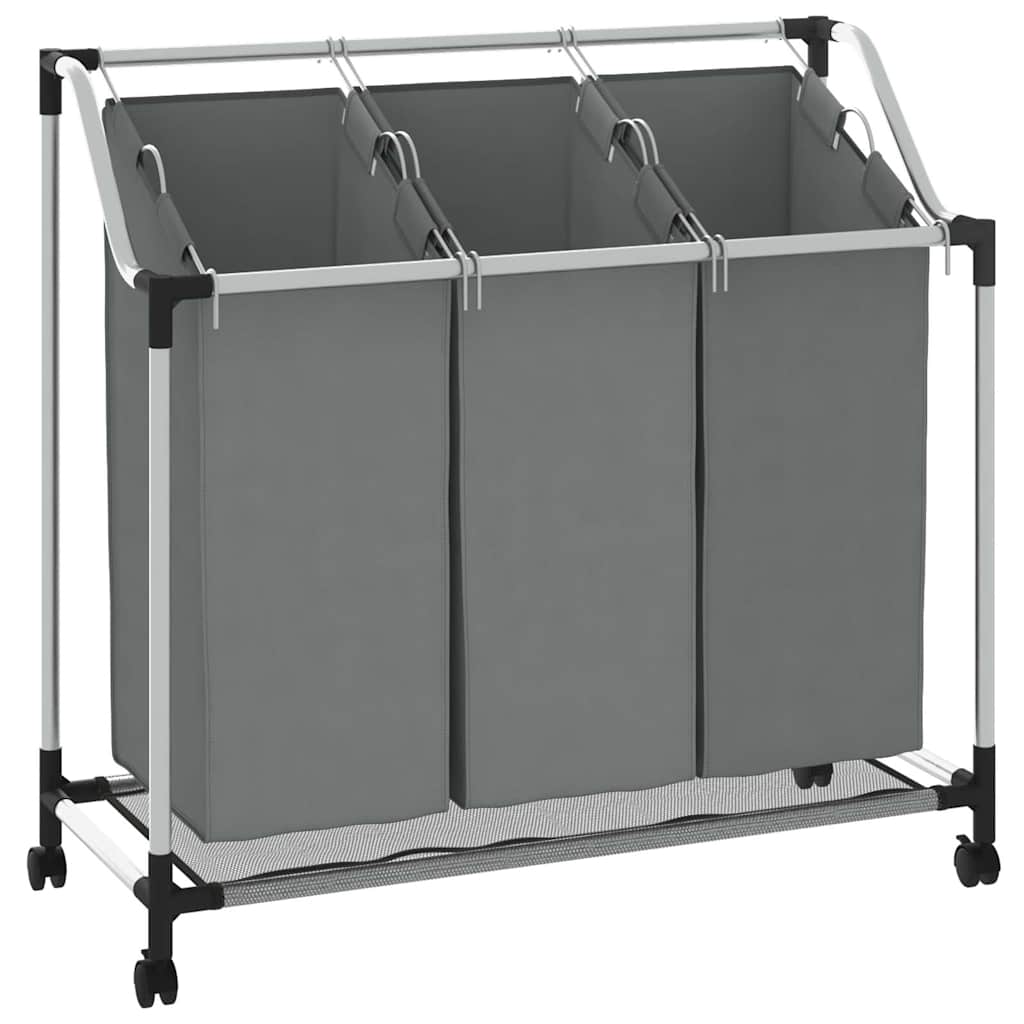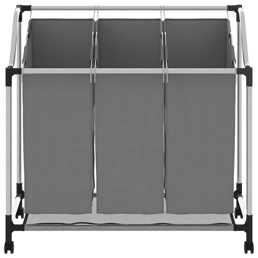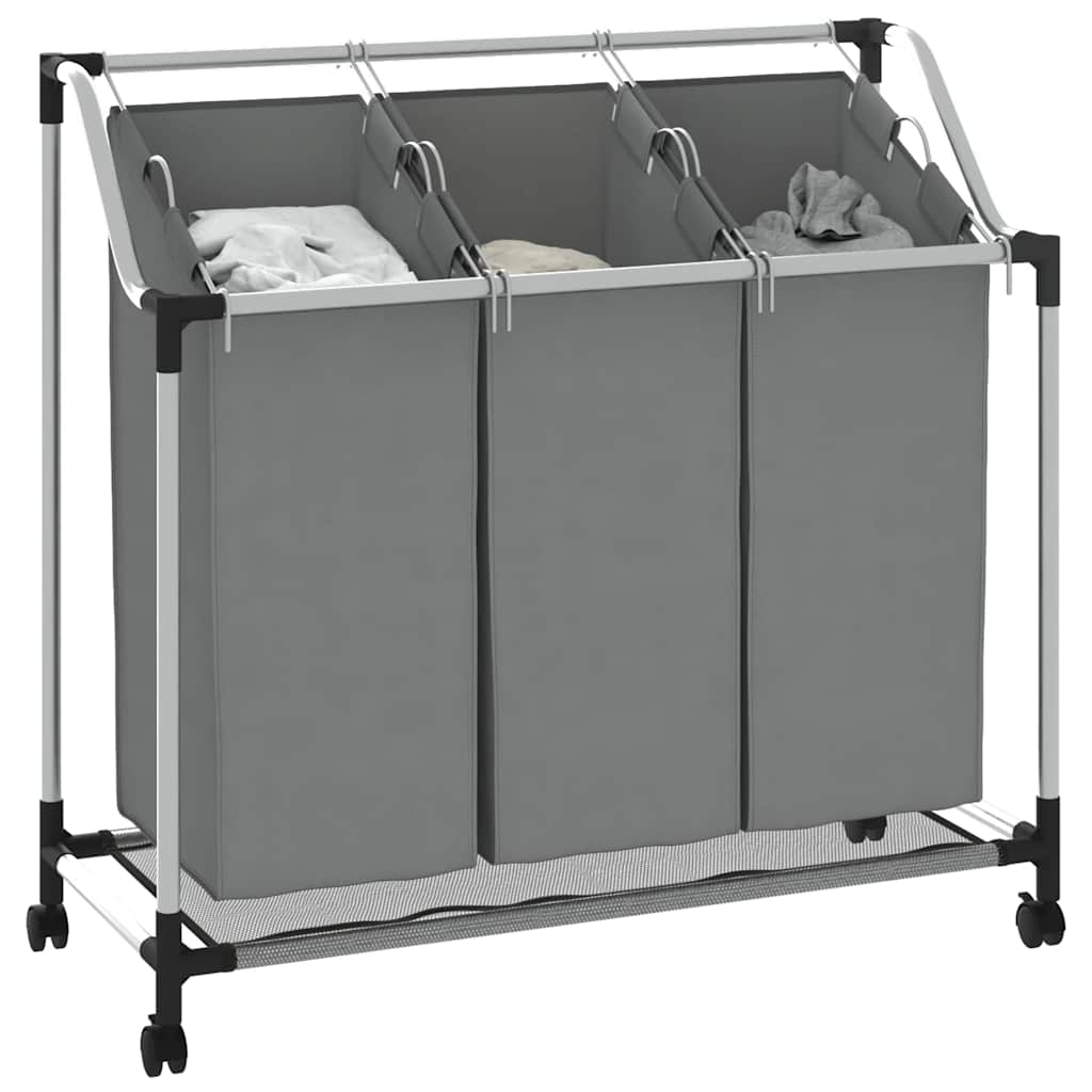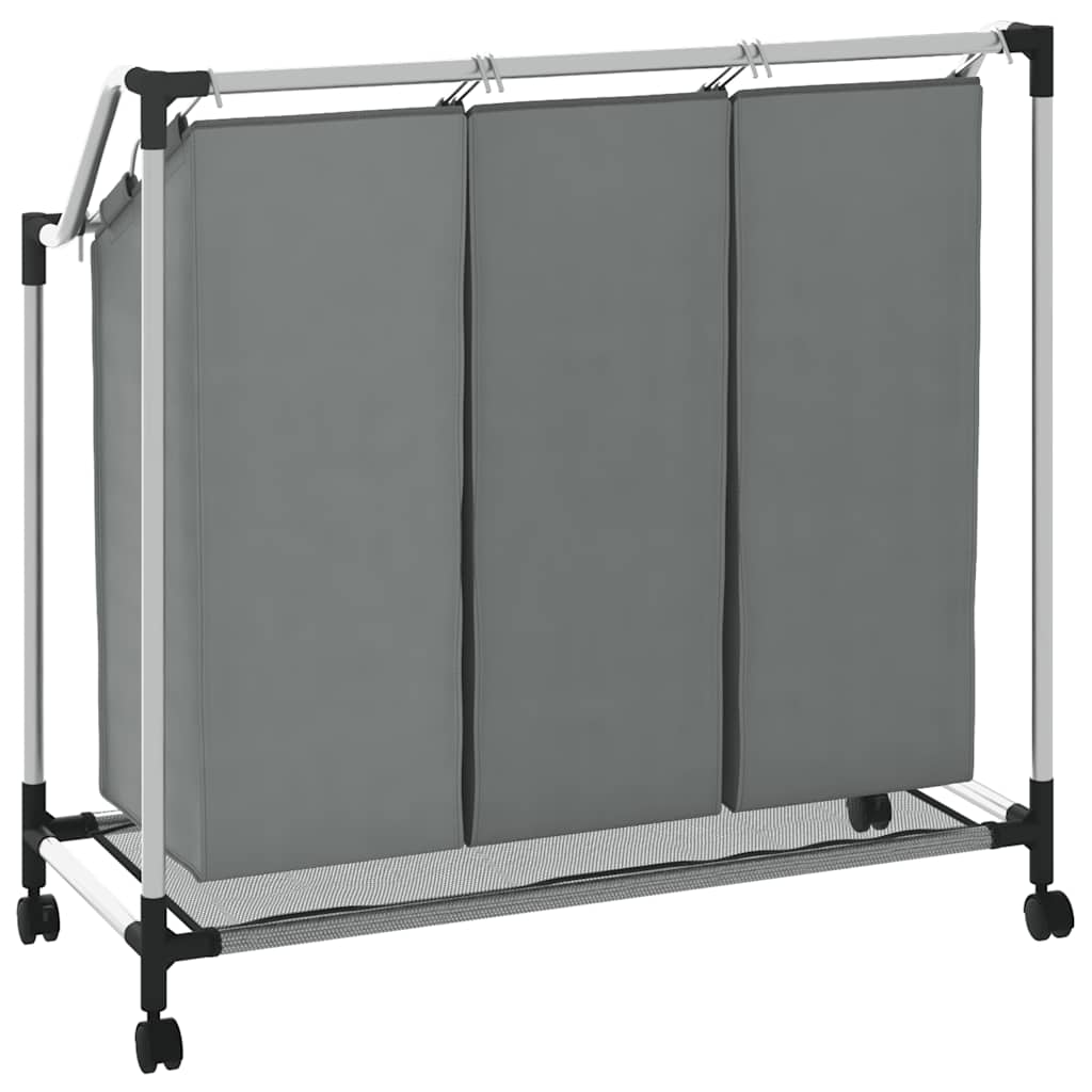 vasketøjskurv med hjul 3 rum grå