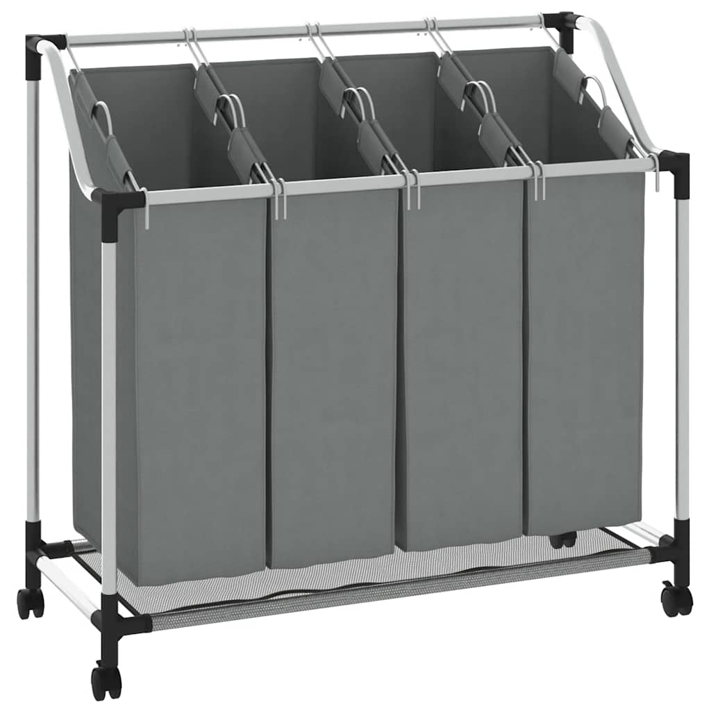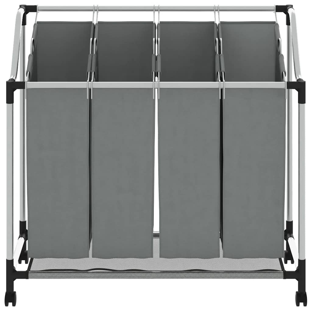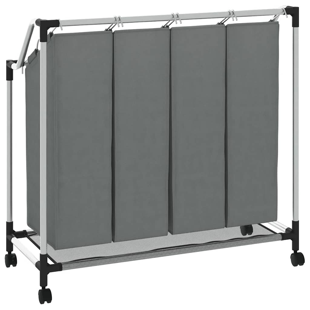 vasketøjskurv med hjul 4 rum grå