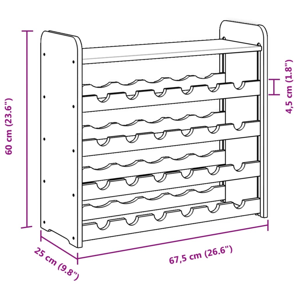 - Massivt fyrretræ: Denne vinreol er lavet af massivt fyrretræ. Massivt fyrretræ er et smukt naturmateriale. Fyrretræ har lige årer, og knasterne giver materialet dets karakteristiske, rustikke look.